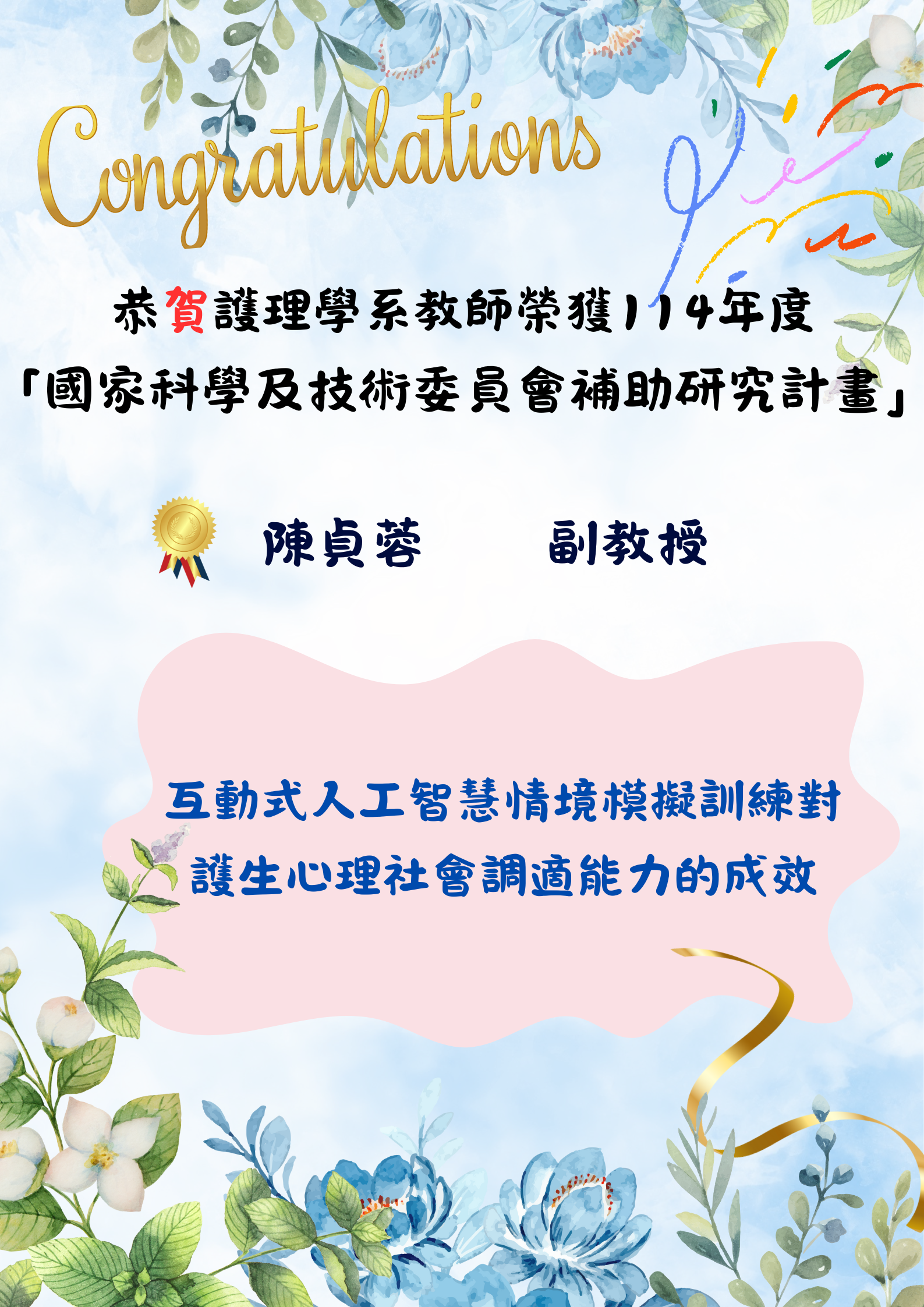[2025/08/01] 恭賀本系陳貞蓉副教授榮獲114年度科技部計畫